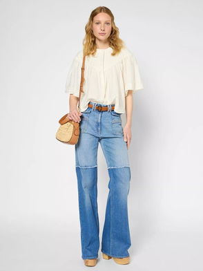 Denim Shirt With Vintage Look Embroidery In Ecru Wash