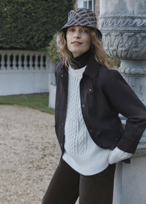 Burgundy & Cream Cat Collared Knitted Bomber Jacket