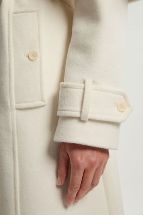 Brushed Wool Pu Mix Placed Floral Embroidery Applique Tailored Cape Full Skirted Midi Coat
