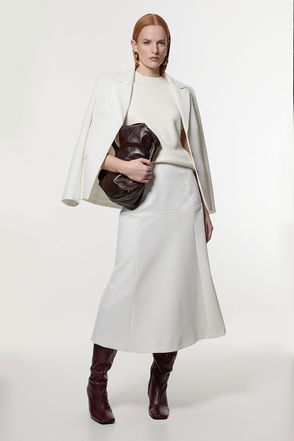 Compact Stretch Stab Stitch Square Neck Tailored Wide Leg Jumpsuit