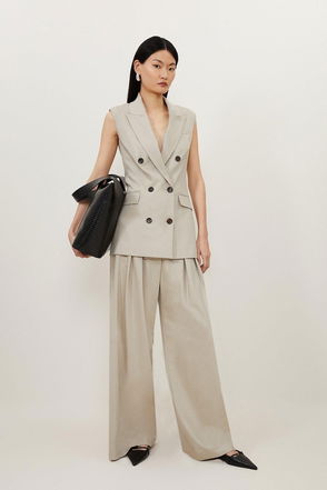 Compact Stretch Wide Leg Darted Tailored Trousers