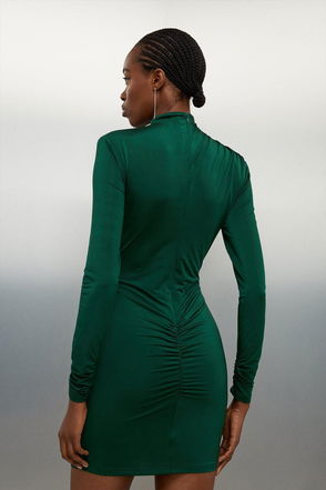 Jersey Crepe Ruched Long Sleeve Mini Dress
