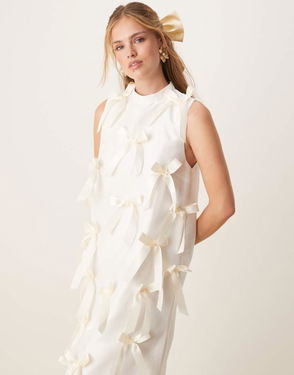 Snowdrop All Over Bow Midi Dress In Ivory