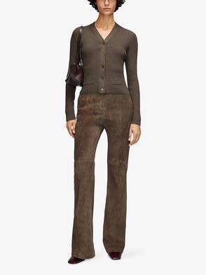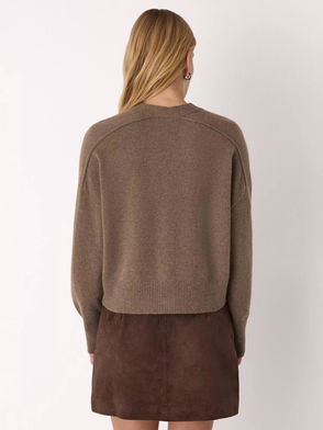 Wool Blend Cardigan With Cinched Waist And Volume Sleeves In Mole