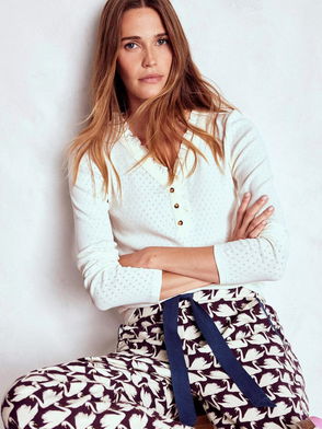Sprig Cotton Jersey Long Pyjama Set, Ivory