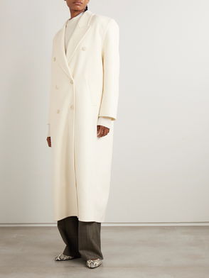 Brushed Wool Pu Mix Placed Floral Embroidery Applique Tailored Cape Full Skirted Midi Coat