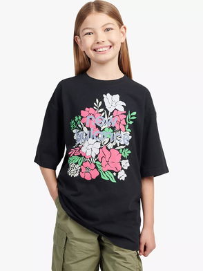 Kids' Stacked Floral Graphic T-Shirt, Caviar