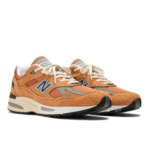 Unisex Made In UK 991v2 Grounded Pastels In Orange/Grey/Blue Suede/Mesh