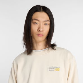 Men's Athletics Premium Logo Crew In White Cotton Fleece