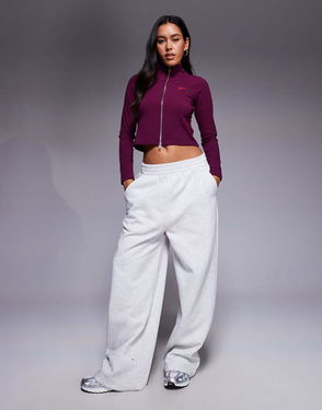 Gym Life Swoosh Double Zip Longsleeve Top In Burgundy