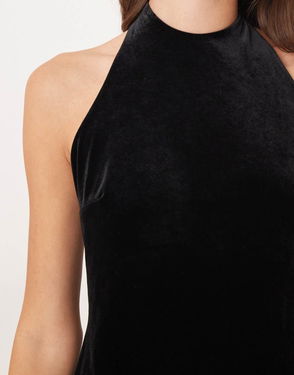 Velvet Fallen Shoulder Ruched Midi Dress In Black