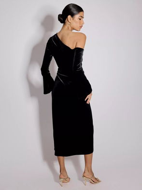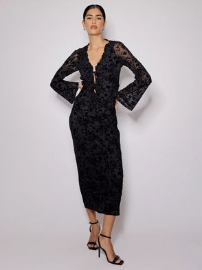 Plus Clarissa Devore Velvet Midi Dress In Black