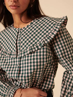 Jennifer Gingham Oversized Collar Top, Green/Pink