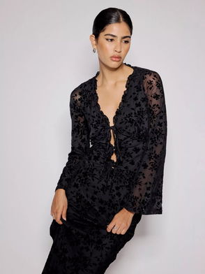 Arden Ruffle Boho Blouse Co-ord In Chocolate