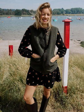 Tie Front Floral Quilted Gilet Containing TENCEL™ Lyocell, Navy