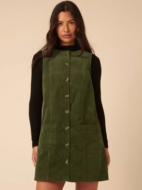 Riley V-Neck Shirred Waist Cotton Corduroy Midi Dress, Green