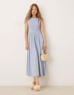 Billie Shirred Bodice Midi Dress In Dusty Blue