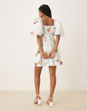 Nova Puff Sleeve Mini Dress In Fruit Check Print