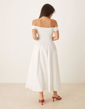 Rita Ruffle Shoulder Broderie Midi Dress In White