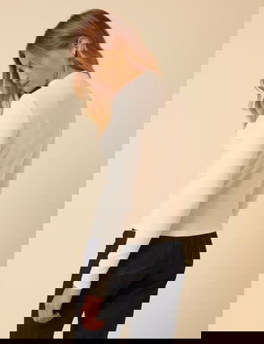 White Ribbed High Neck Long Sleeve Top