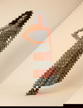 Blue Tile Printed Shirred Bandeau Top