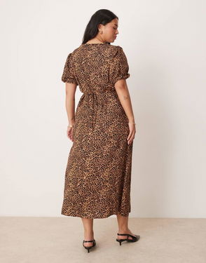 Plus Felicia Ruffle Detail Midi Dress In Green Spot