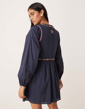 Birdie Mini Dress With Embroidered Collar In Black