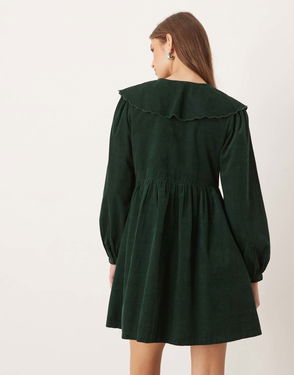 Fleur Velvet Ruffle Sleeve Mini Dress In Dark Green