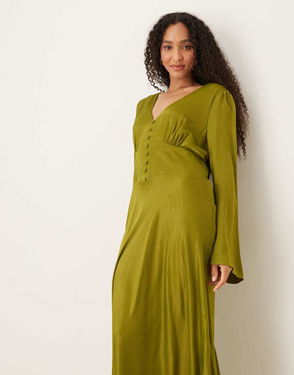 Tailored Button Front Jumpsuit With Square Neck In Khaki Green