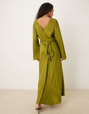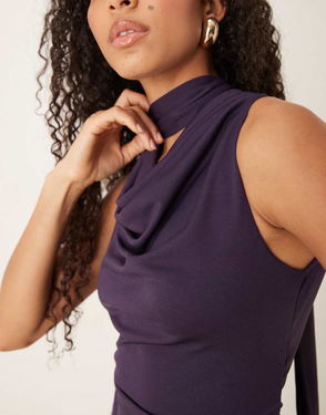 Aggie Drape Neck Satin Maxi Dress