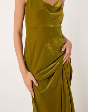 Trixie Velvet Cami Midaxi Dress In Olive