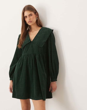 Cassis Cord Mini Smock Dress In Dark Green