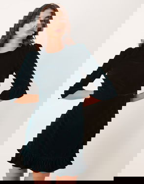 Fleur Velvet Ruffle Sleeve Mini Dress In Dark Green