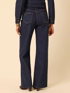 High Rise Scallop Trim Cropped Palazzo Jeans