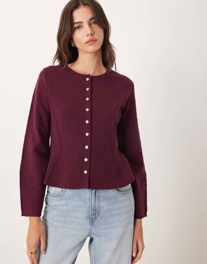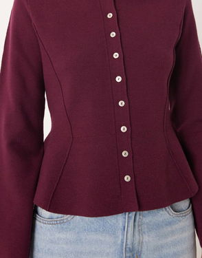 Pointelle Yolk Scallop Trim Wool Blend Cardigan, Black