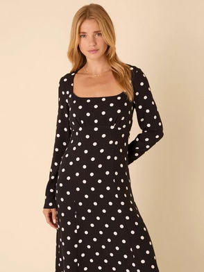 Delilah Polka Dot Midi Dress Containing LENZING™ ECOVERO™ Viscose, Black/White