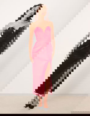 Felicity Ruched Bandeau Midi Dress In Burgundy