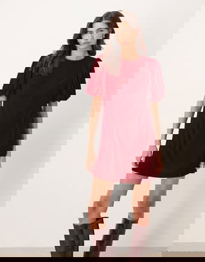 Boston Velvet Puff Sleeve Mini Dress In Red