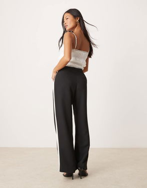Petite Paulina Side Stripe Wide Leg Trousers In Black