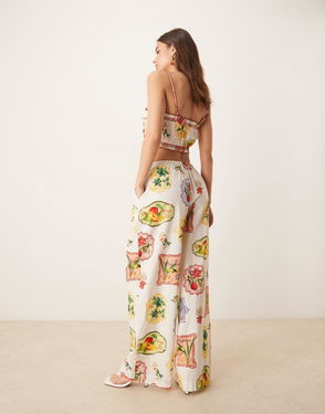 Shona Straight Leg Trousers Co-ord In Postcard Fruit Print