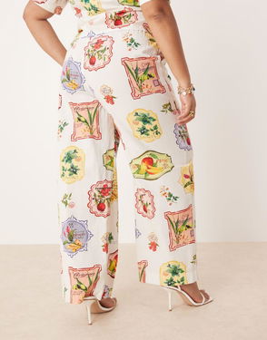Plus Shona Straight Leg Trousers Co-ord In Postcard Fruit Print