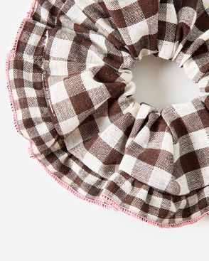 Eunice Brown Gingham Frill Edge Hair Scrunchie