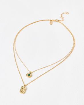 Lima Green Stone Textured Gold Tone Pendant Necklace