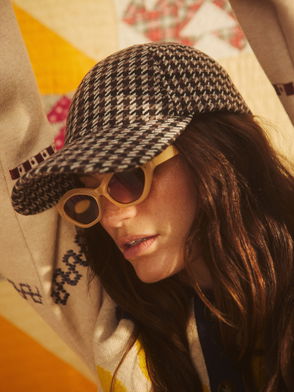 Brown Houndstooth Wool Blend Cherry Motif Cap Hat