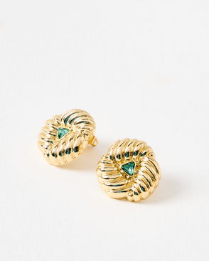 Lima Green Stone Textured Gold Tone Stud Earrings