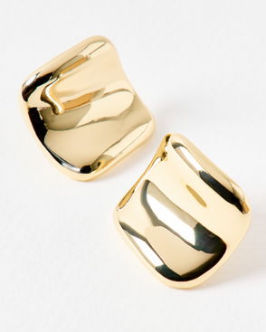 Cierre Shiny Gold Tone Square Statement Earrings