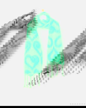 Green Heart Print Heavyweight Twisted Tassel Scarf