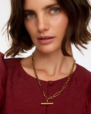 Toni Gold Tone Stainless Steel Waterproof Long T-Bar Necklace
