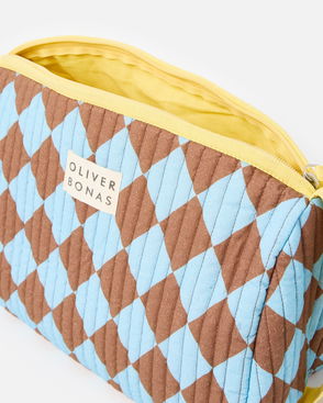Striped Blue & Orange Corduroy Large Padded Makeup Bag