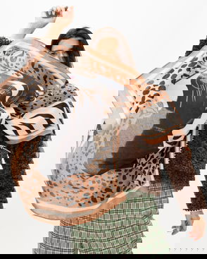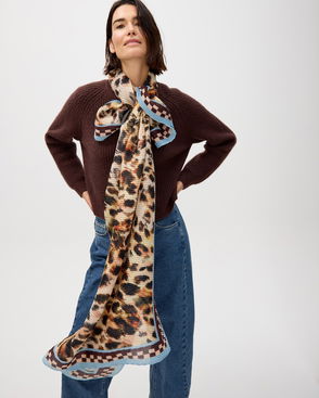 Brown Animal Print & Chequerboard Pleated Lightweight Scarf